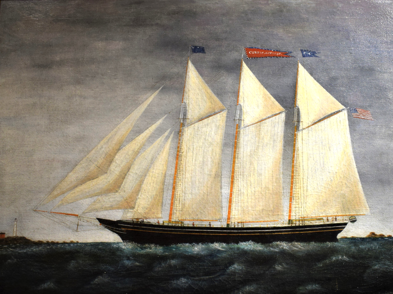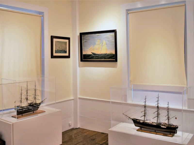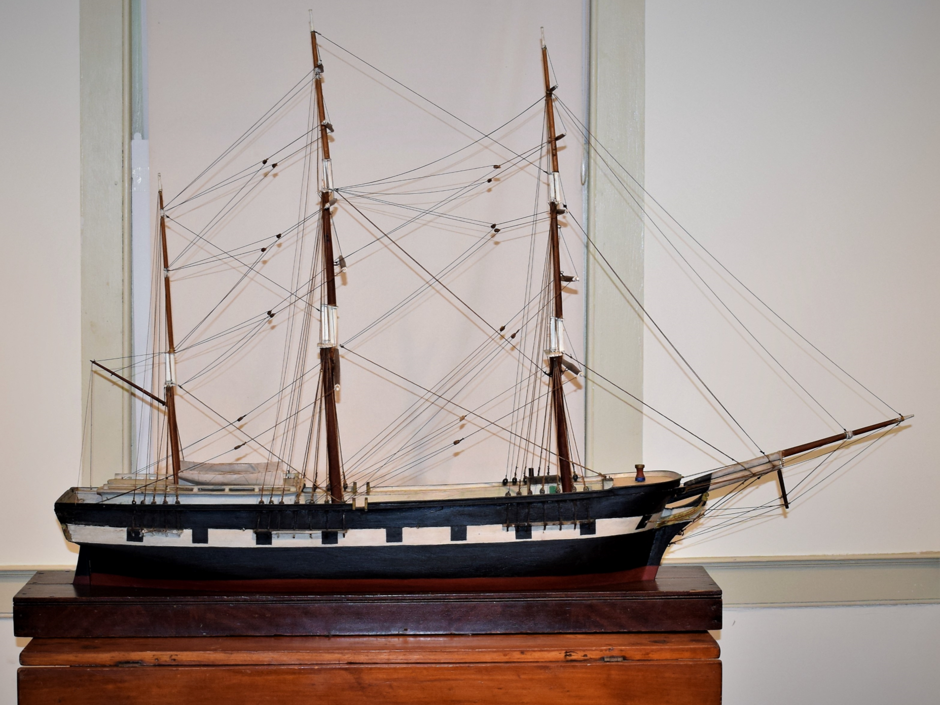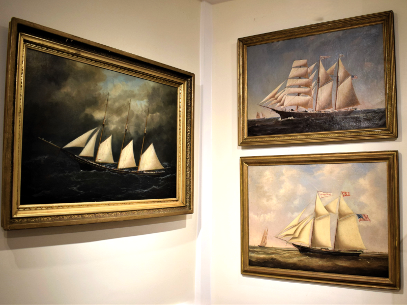 Given the Oysterponds community’s historical connection and proximity to the sea, it is no wonder that OHS’s collection abounds with significant artwork and artifacts that have to do with ships, seafaring, whaling, etc. The Webb House Maritime Exhibition is a compelling distillation of the many noteworthy maritime-related items in our collection, including 16 of our maritime paintings and seven of our ship models—many recently restored.